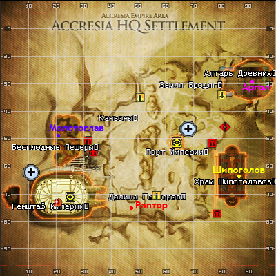 2.1. Боссы в ГШ. 2.1.1. Место расположения (см карту) - Молодой Раптор Доминант (42 лвл). Как добраться: "Верхний" выход из Генштаба -> прямо к мосту -> за мостом на право по переходу через каньон -> после перехода налево до ПБ (см. по карте точку респа). Используемые Боеприпасы: Вода. - Бешеный Молотоглав "Тупорыл" (41 лвл). Как добраться: "Верхний" выход из Генштаба -> налево к посадочной площадке -> через посадочную площадку на мост -> за мостом на лево в пещеру -> в пещере к левой стене до ПБ (см. по карте точку респа). Используемые Боеприпасы: Вода. - Предводитель Шипоголовов (40 лвл) Как добраться: Аванпост Империи (Порт Империи) -> вход в Храм Шипоголова радом с Аванпосом -> первый поворот налево, прямо и до последней площадки -> поворот на право и до площадки с ПБ (см. по карте точку респа). Используемые Боеприпасы: Вода. - Стальной Аргол (43 лвл). Как добраться: Аванпост Империи (Порт Империи) -> Алтарь Древних до ПБ (см. по карте точку респа). Используемые Боеприпасы: Вода. 2.1.2. Тактика Дамагеров: ланчи бафаются, садятся в осадки на растоянии выстрела до ПБ и ждут команды Ведущего к атаке. 2.1.3. Тактика Танков: танки бафаются и ждут команды Ведущего. После команды дамажат ПБ двуручным оружием. На Ароголе охрана ПБ дебафит ланчей (снижение скорости атаки), танки экипируются щитом/одноручным мечом, агрят охрану и отводят ее в сторону. 2.1.4. Важно! ПБ не отводить от места респа! Иначе он перереспится с полным ХП!