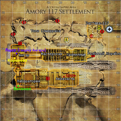 2.2. Боссы на Заставе 117. 2.2.1. Место расположения (см. карту) - Королева Медведок (49 лвл) Как добраться: Застава 117 -> Западный выход из Заставы 117 -> Через Топи Самороха к Ангару -> ПБ находится внутри Ангара (см. по карте точку респа). Используемые Боеприпасы: Воздух. - Царь Медведок (47 лвл) Как добраться: Застава 117 -> Южный выход из Заставы 117 -> Авиачасть до ПБ (см. по карте точку респа). Используемые Боеприпасы: Воздух. - Реликтовый Ящер (45 лвл) Как добраться: Застава 117 -> Южный выход из Заставы 117 -> Мимо Хранилища и Мастерской по направлению к Ангару -> ПБ находится сверху Ангара (см. по карте точку респа). Используемые Боеприпасы: Вода. - Царь Богомолов (50 лвл) Как добраться: Застава 117 -> Западный выход из Заставы 117 -> Через Топи Самороха к Ангару -> Черех Ангар в Лабораторию до ПБ (см. по карте точку респа). Используемые Боеприпасы: Без разницы. 2.2.2. Тактика Дамагеров: ланчи бафаются, садятся в осадки на растоянии выстрела до ПБ и ждут команды Ведущего к атаке. 2.2.3. Тактика Танков: танки бафаются и ждут команды Ведущего. После команды дамажат ПБ (Царь медведок, Королева медведок и Реликтовый ящер) двуручным оружием. В случае, если охрана дебафит ланчей - экипируются щитом/одноручным мечом и отводят охрану. На Богомоле танки агрят ПБ (эикипровка щит/одноручный меч). 2.2.4. Поход на Царя Богомолов осуществяется только при наличии 3-х и более полноценных пати. 2.2.5. Важно! ПБ не отводить от места респа! Иначе он перереспится с полным ХП!