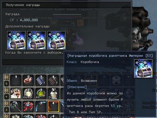 Стартовый персонаж: Клерк (Генштаб). Задание: Собрать 10 лута Спектрум с Королей Бродячих Мутантов, Бродячих Мутантов и Растений Мутантов, убить ПБ Айзена Разрушителя. Награда: Коробочка Удачи 53 уровня и 4.000.000 расовой валюты.